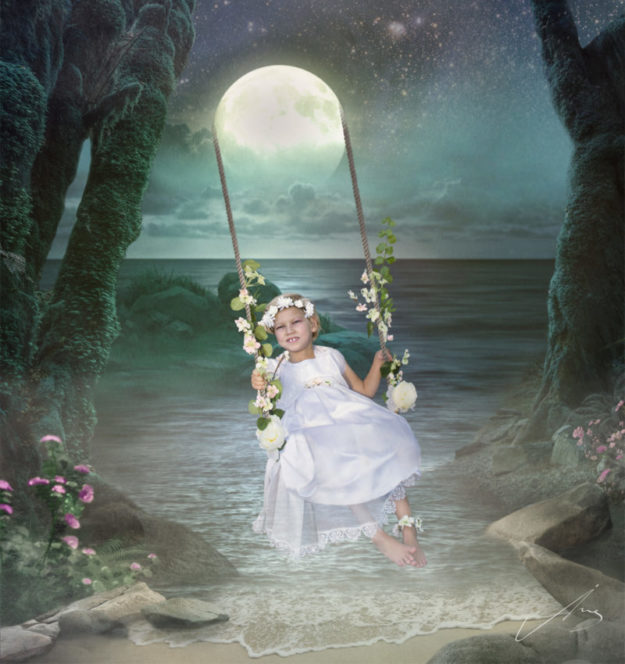 Dit werk is geveild, de opbrengst ging naar Stichting Ster Vanaf de eerste ontmoeting met Sterre was het al gelijk duidelijk, zij gaat schommelen aan de maan. Sterre heeft cerebrale…