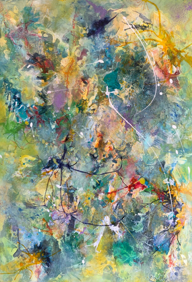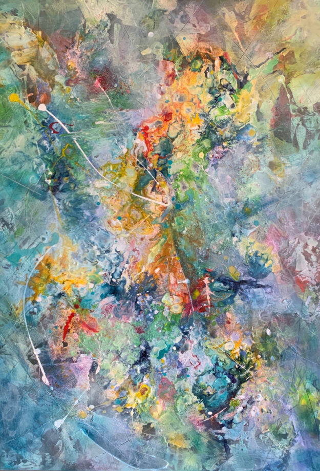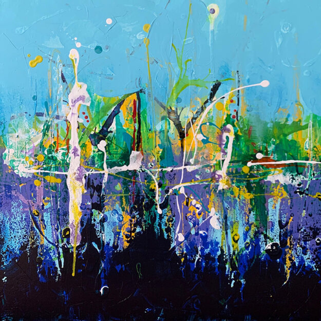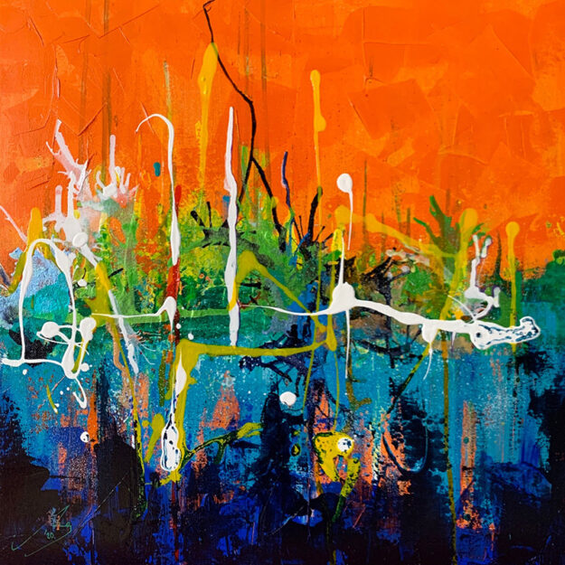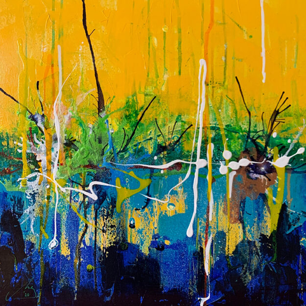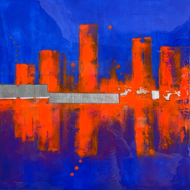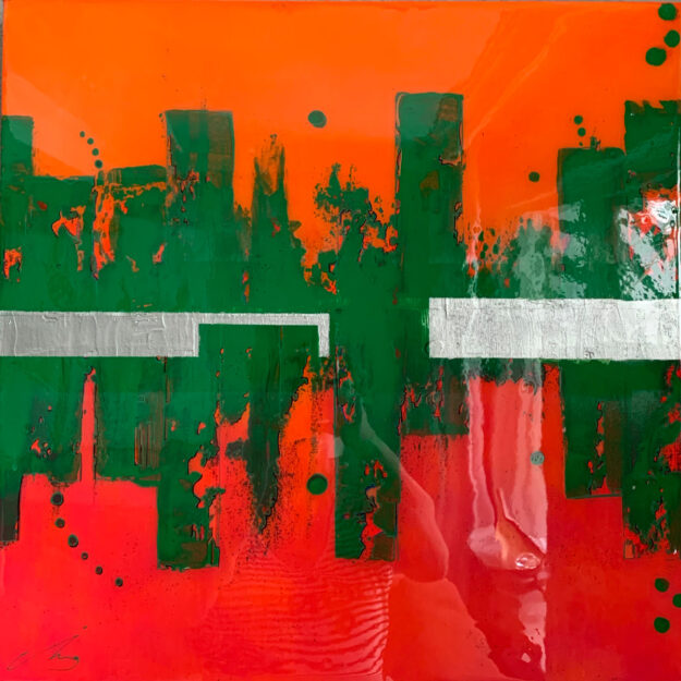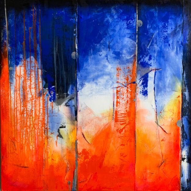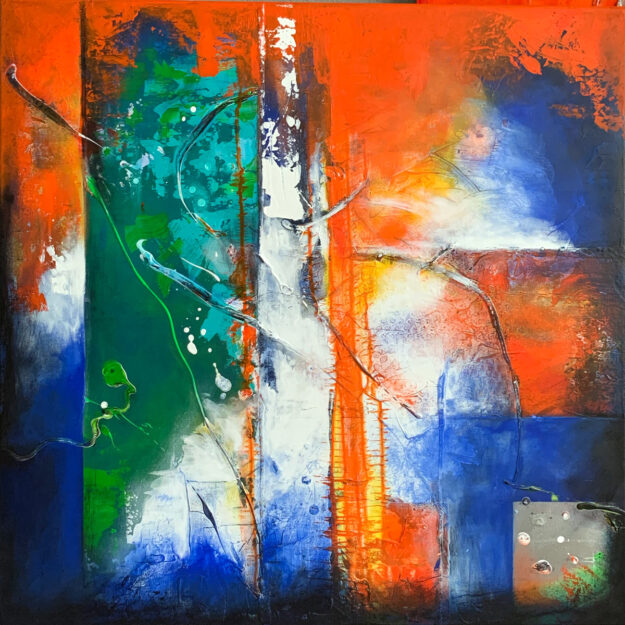 80 x 80 x 3,5 cm Schilderij – Acryl en epoxy op canvas. € 675,-